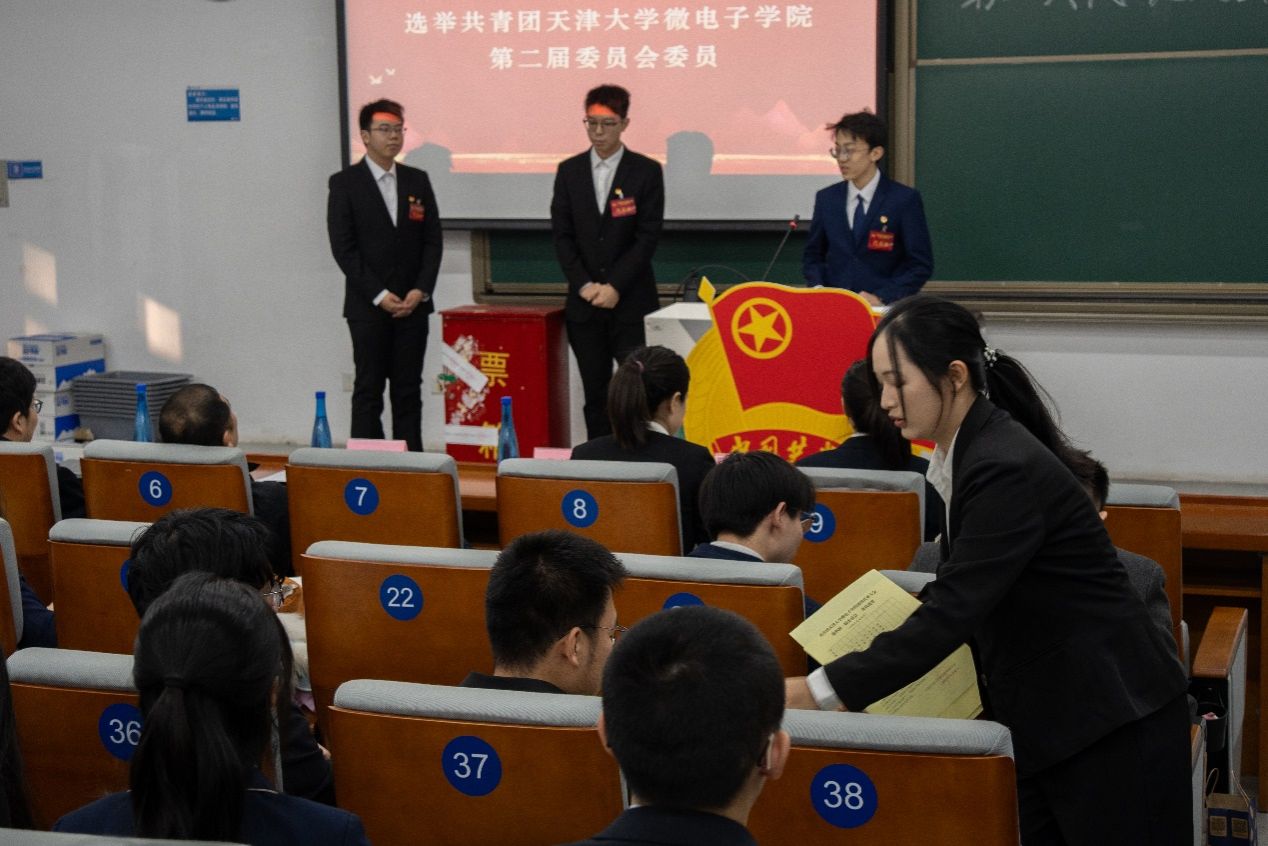 会后,共青团爱情岛论坛 微电子学院第二届委员会召开第一次全体会议,经无记名投票,选举王玥同志为新一届委员会书记,选举尹明同志为新一届委员会副书记。
