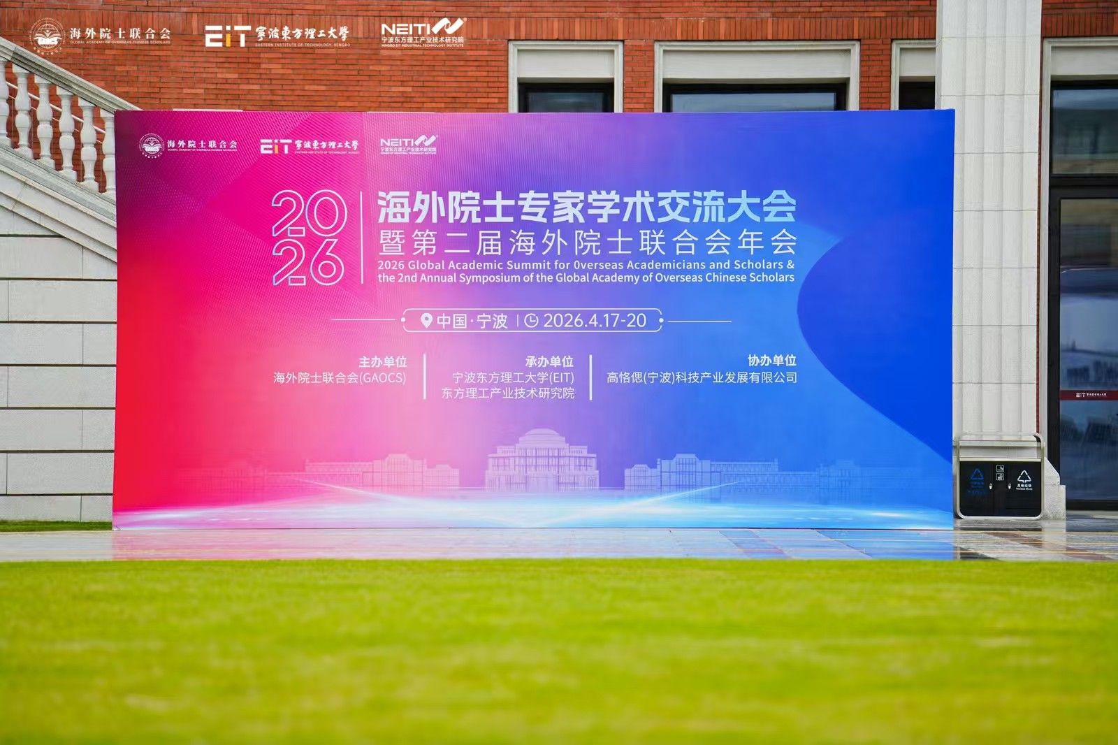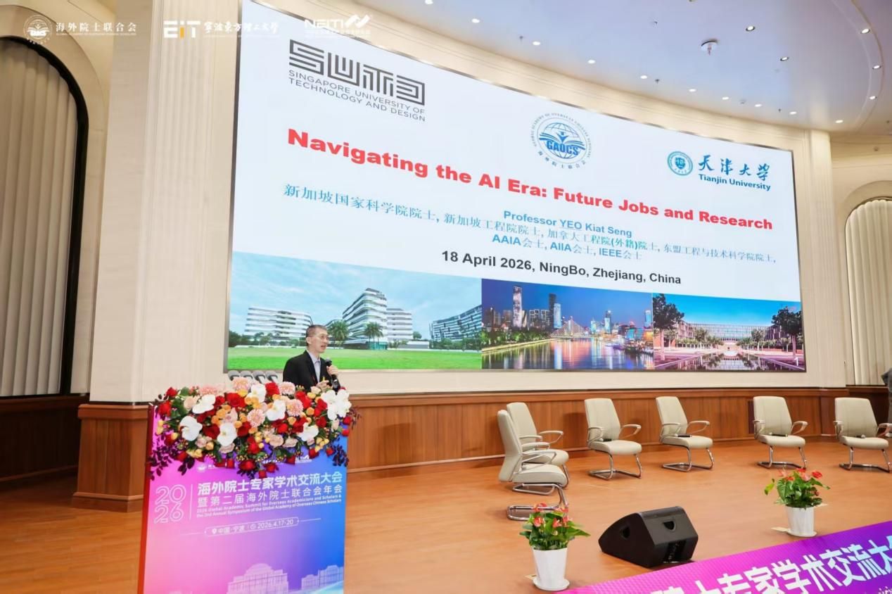本站讯(通讯员:董倩楠)2026年4月17日至20日,2026海外院士专家学术交流大会暨第二届海外院士联合会年会在浙江宁波成功举办。本次大会由海外院士联合会(GAOCS)主办,宁波东方理工大学(EIT)、东方理工产业技术研究院承办,高格偲(宁波)科技产业发展有限公司协办,汇聚了海内外众多顶尖院士专家与科研学者,共同探讨前沿科技领域的创新发展与未来趋势。